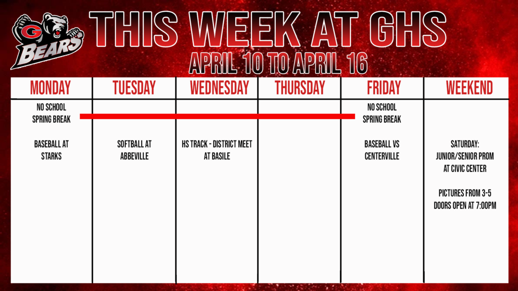 Submissions will be chosen at random and shared on our school's website and social media each week. Thank you for supporting GHS!